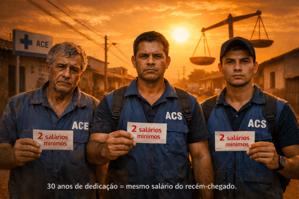 Todos nivelados no mesmo salário-base. Alguns recebem mais complemento, outros menos, outros nenhum. O resultado? O agente que carregou o SUS nas costas por três décadas ganha exatamente o mesmo que o colega que entrou ontem.